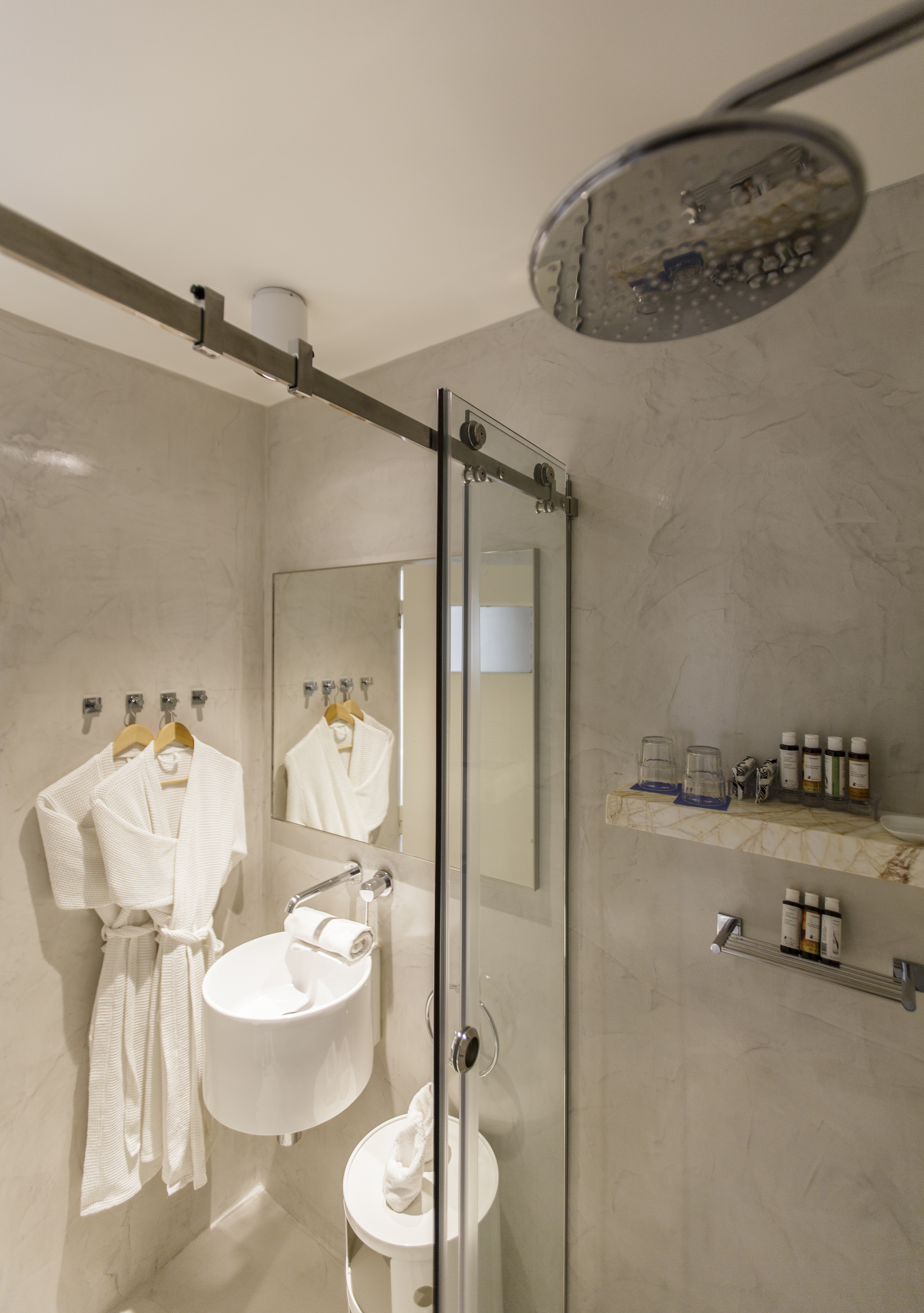 Our Caldera View Studios, each with its private veranda and outdoor jacuzzi, are the ideal spot from which to enjoy the caldera view and Santorini’s romantic sunsets. Furnished in a minimal, modern style, each studio consists of one main space and can accommodate three people.